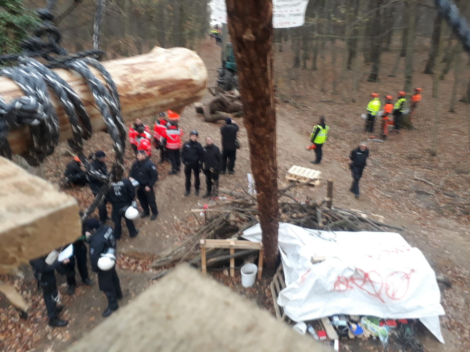 >>Eine Sprecherin der Polizei betonte am Donnerstagmorgen (22.11.2018), dass keine Baumhäuser oder andere Wohnstätten geräumt würden. In den vergangenen sechs Wochen sind in dem Wald zahlreiche Neubauten errichtet worden. Umweltaktivisten leben in ihnen.<<