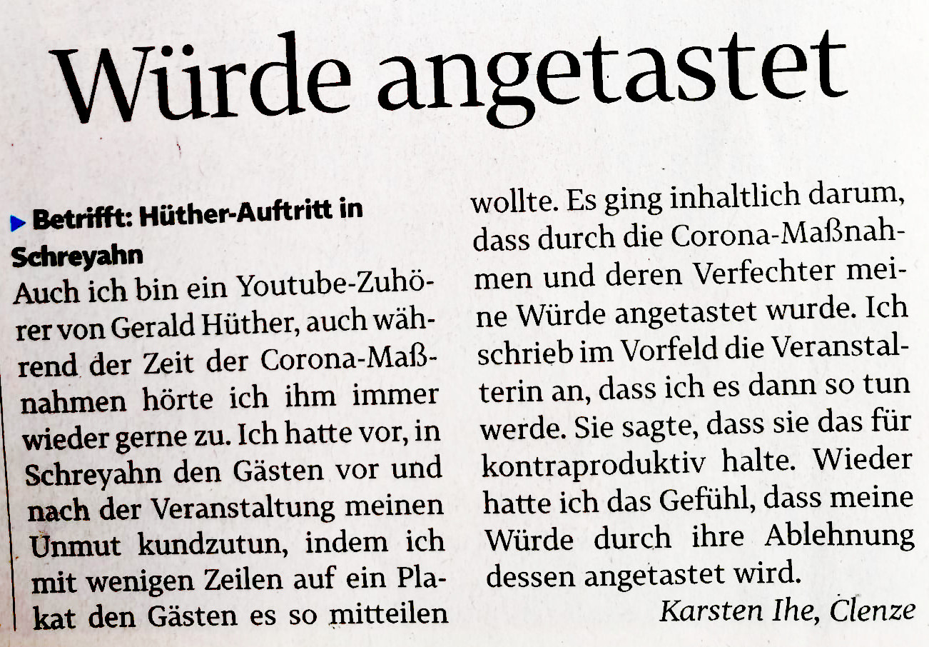 Der Besuch von Gerald Hüther hat sehr unterschiedliche Reaktionen erzeugt, von denen hier eine kleine Auswahl erscheint:
